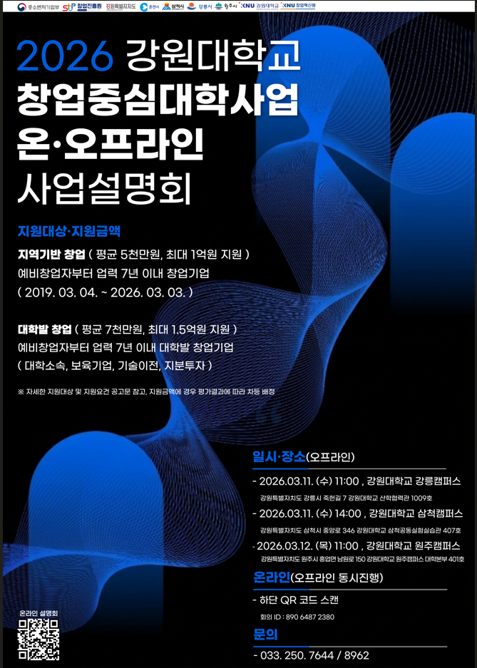2026 창업중심대학 온오프라인 사업설명회 안내 및 홍보 협조 요청