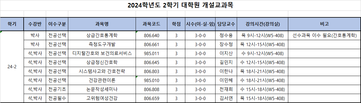 - 수강신청 변경기간: 2024. 9. 2.(월) ~ 9. 6.(금)