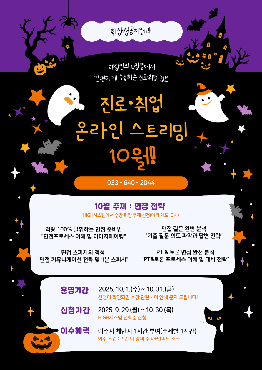 [학생성공지원과] 2025학년도 10월 진로·취업 온라인 스트리밍