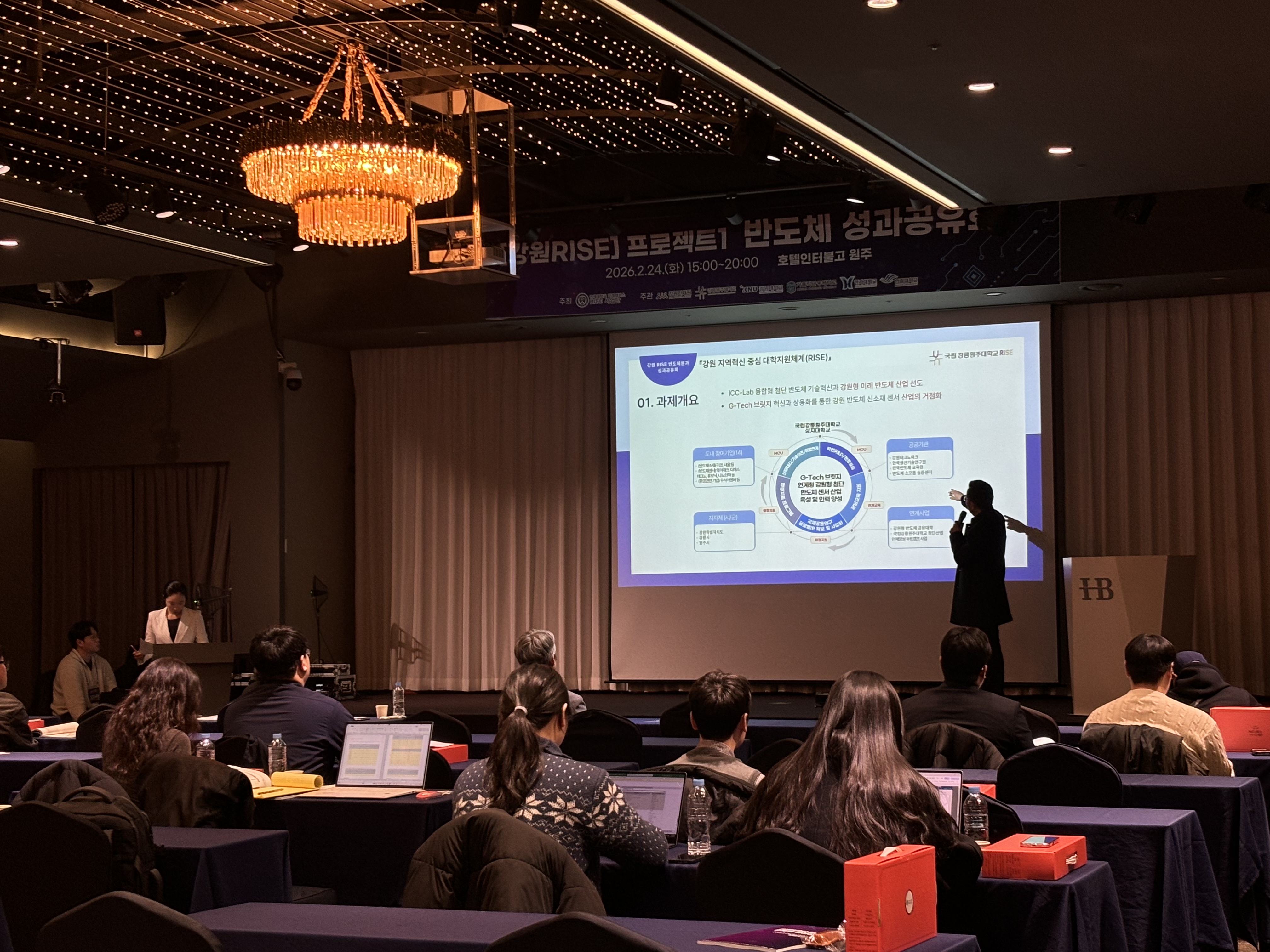 지난 2월 24일, 원주 인터불고 호텔에서 개최된 강원 RISE 사업단 성과공유회에 우리 학부의 RISE 반도체분과 사업단와 RISE ICT분과 사업단이 참석하여 1차년도 주요 성과를 공유했습니다.